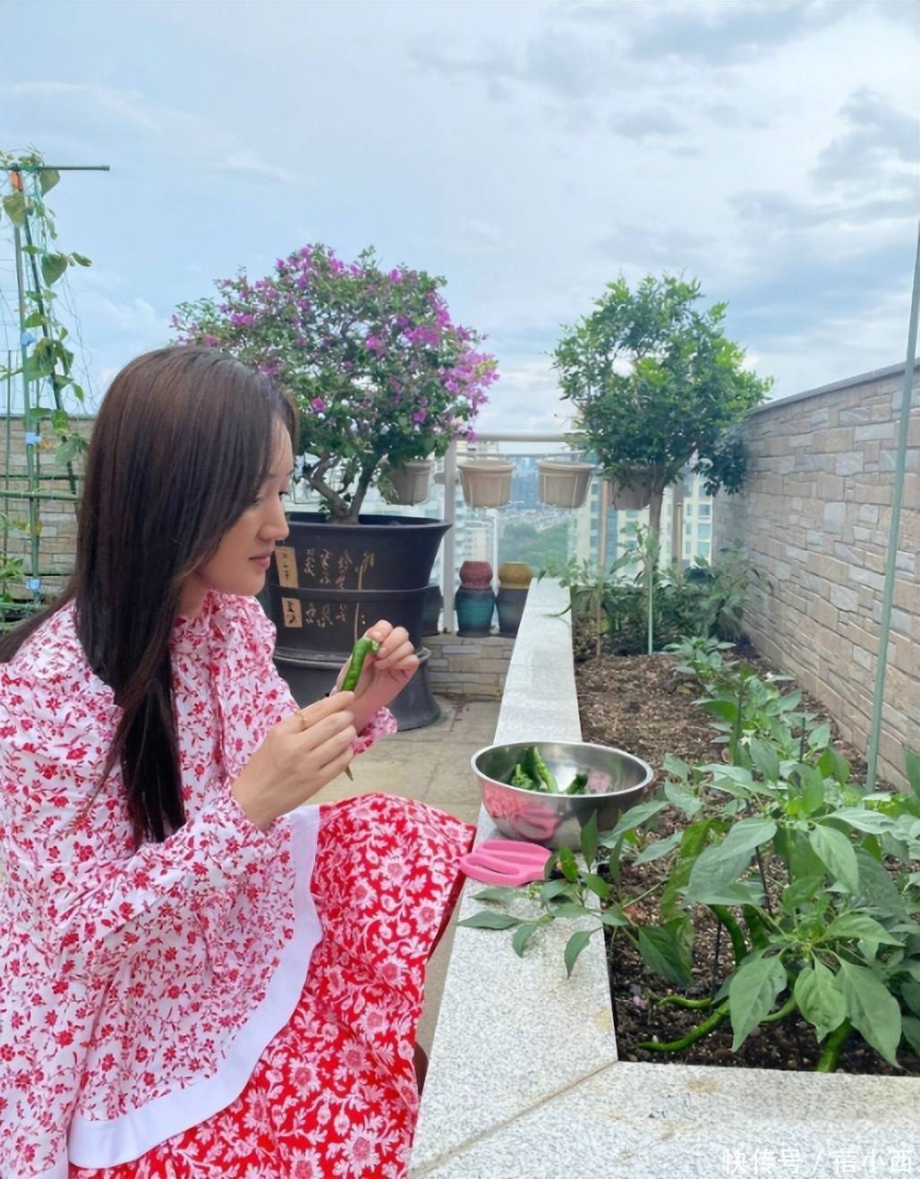 54岁杨钰莹不见老!穿碎花裙在豪宅摘菜好年轻,阿姨年纪却像00后
